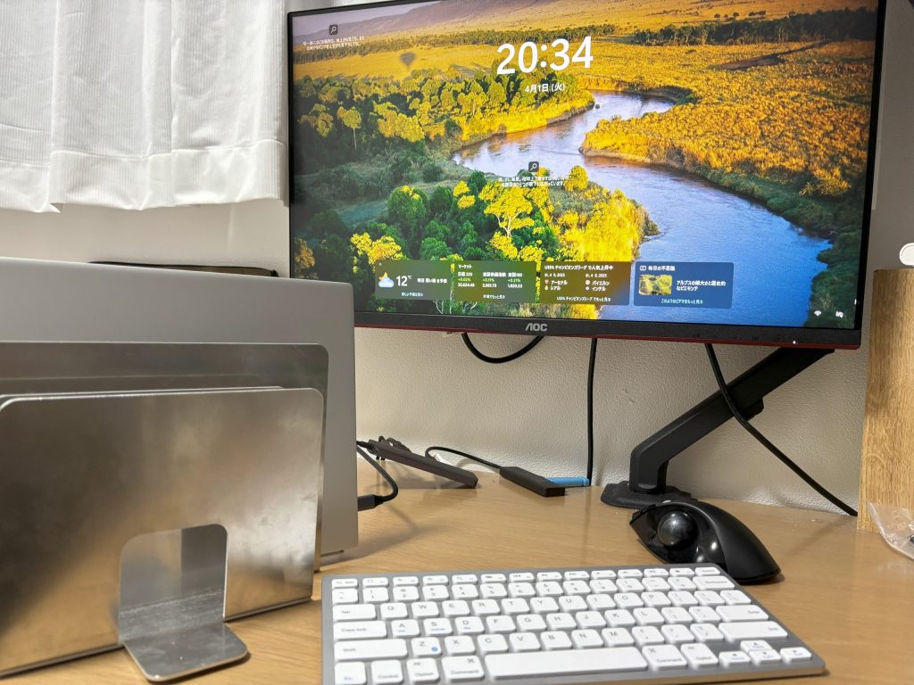 また,高専の実習で作製したPCスタンドを使用してデスクを広く使えるようにしています.